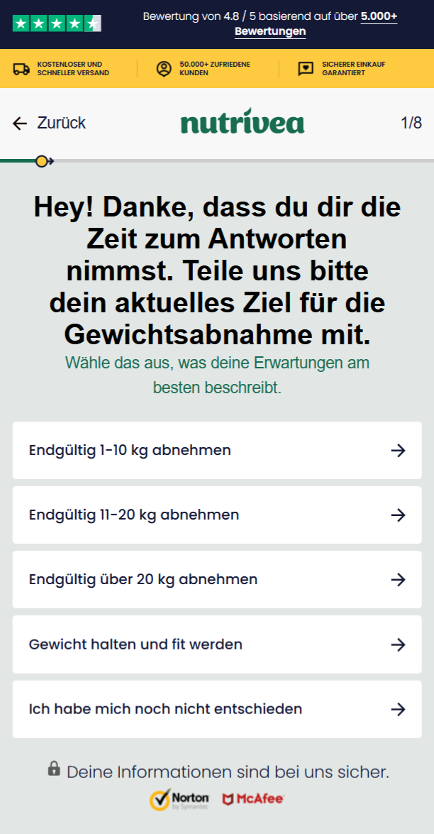 Über 50.000 Kunden vertrauen bereits auf die unterstützende Wirkung von Nutrivea bei ihrer Lebensstiländerung. Nutze dieses Zeitfenster, um den Grundstein für deine eigene Transformation zu legen.